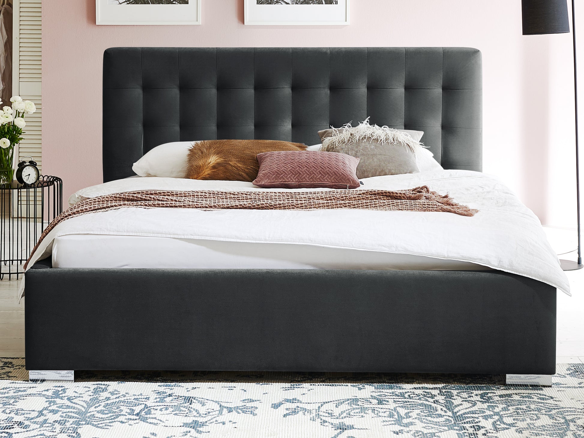 Mit seiner niedrigen Einstiegshöhe bietet das Polsterbett Verona zusätzlichen Komfort, besonders für Menschen, die ein Bett in bodennaher Höhe bevorzugen. Der stabile Lattenrost sorgt für eine angenehme Liegefläche und ergänzt die durchdachte Bauweise. Dieses Bett kombiniert Komfort, Funktion und zeitlose Eleganz in perfekter Harmonie.